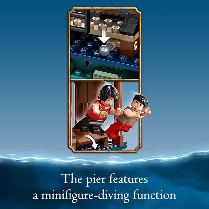 - Toy Boat and Pier - Includes a toy boat and a pier model with a minifigure-diving function, a rotating clock, and accessory elements like Gillyweed Potion for an immersive play experience.