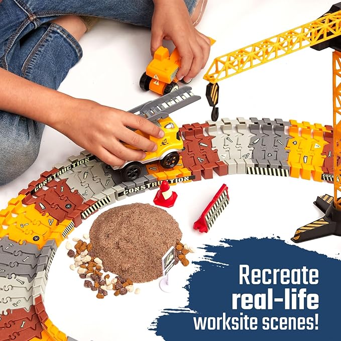 JITTERYGIT Construction Race Track Site Toy - Including Sandbox Vehicles, Trucks, Excavator, Bulldozer, Dump Truck, Crane - Birthday Gift for Kids, Boys, Girls, Toddlers for Ages 3 4 5 6 7 8 Year Old