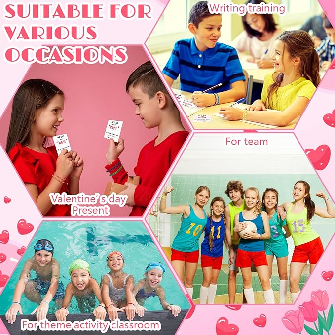 - Thoughtful Presents: these knot bracelets with Valentine's Day cards can be applied as school classroom rewards, school exchange activities souvenirs, birthday gifts, Easter baskets fillers and more for school mates, classmates, teachers and students, creating a strong festive atmosphere around you