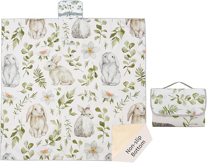 Insular Baby Splat Mat for Under High Chair/Arts/Crafts, Anti Slip and Waterproof Splash Mat for Floor, Portable Picnic Mat, 51x51 Inch, Rabbit