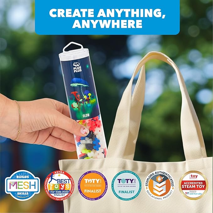Plus Plus 240 Piece Interlocking Building Blocks for Kids, Open Ended Connecting Toys, Stem Bin Classroom Mini Manipulatives - Glow in Dark Play Tube