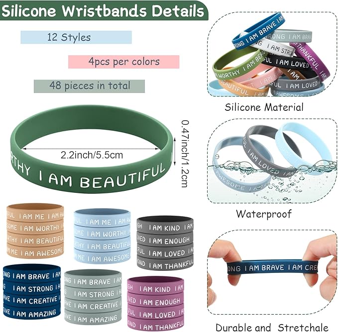 - Abundant Quantity: you will get 48 pieces of motivational bracelets in 12 different styles, 4 of each style, sufficient for your daily wear and replacement; You can share them with your classmates and friend