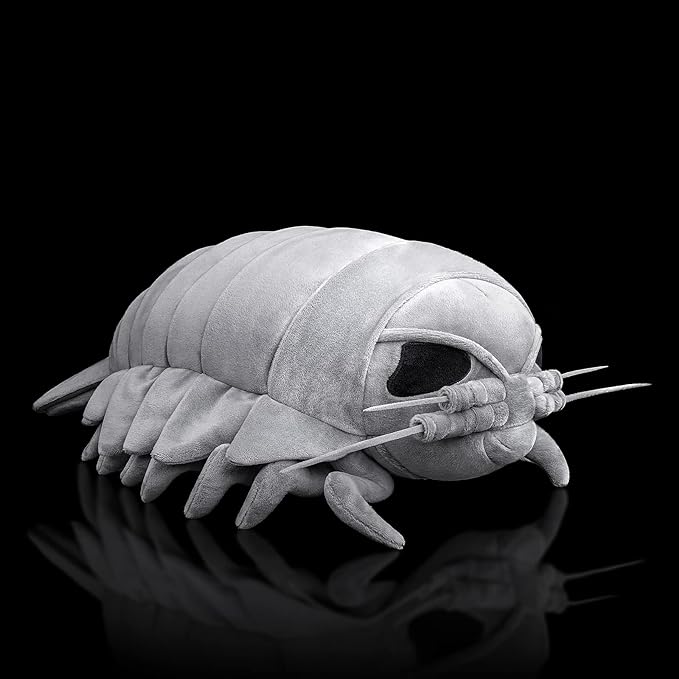 - REALISTIC PLUSH TOY: This is a lifelike large Isopod model toy, the details are realistic. The adorable face and squeezable body of our isopod crustaceans plush are made from premium cloth and filler. its grey fur is smooth and soft, black color eyes and realistic Mouth design, thick shell and claws, the overall shape design is realistic, and the face design is unique, very realistic.