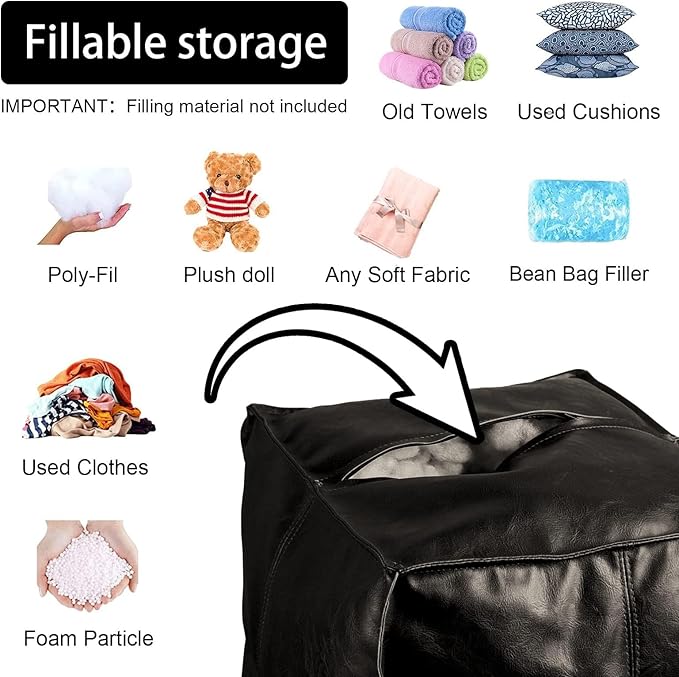 - SOFT & DURABLE & FIRM: Unfilled Square Ottoman Pouf is made of premium PU leather, and through manual cutting, sewing and other processes. Tight and firm stitching ensures that our pouf are not damaged in daily use. Thickening zipper teeth is durable and easy for open and close. It is concealed, so you can not worry about any scratches on the floor.