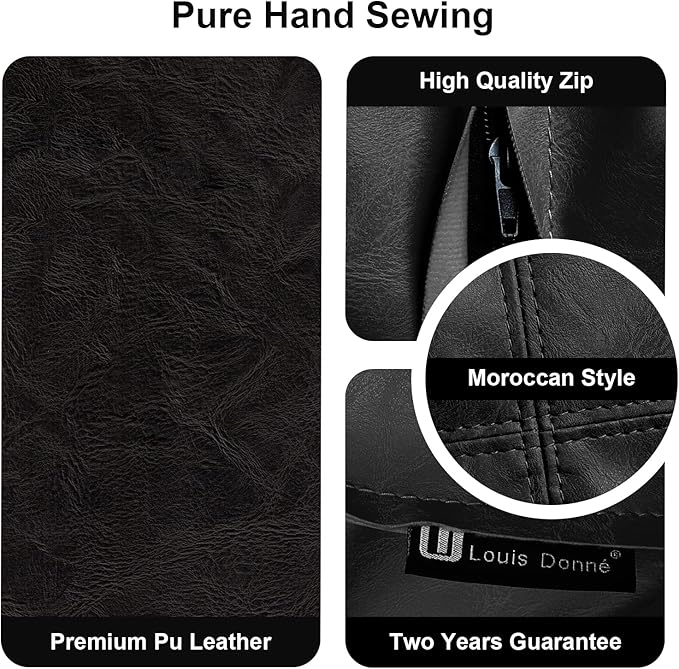 - ECO-FRIENDLY and RECYCLABLE: Louis Donné pouf uses PU leather -- faux leather. Fur free. And it is unstuffed, so you can recycle, reuse, and stuff it with old towels, poly fill, bubble pack, cotton batting, fabric remnants, towels, blankets, used clothes, cushion, pillow, etc. Go Green with the Louis Donné.