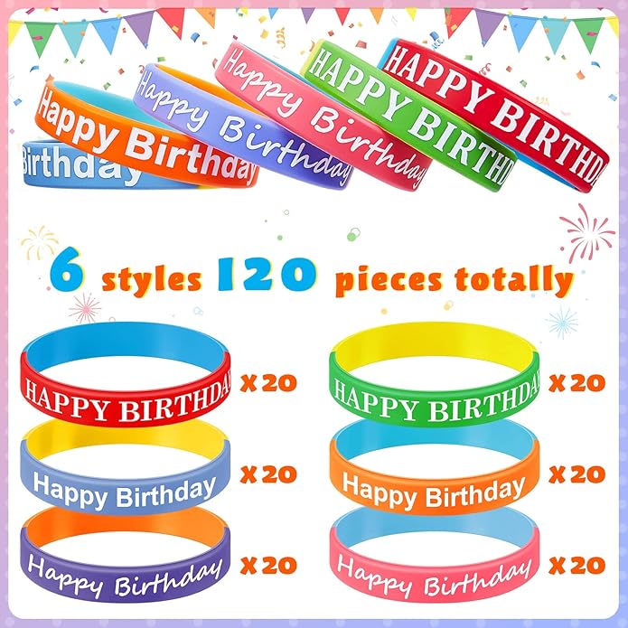 - Enough to Use and Share: we have prepared a total of 120 pieces of happy birthday bracelets for you in the package, which are available in 6 different colors, 20 pieces for each color; The abundant quantity and diverse colors can satisfy your use and replacement requirements in daily life, and you can also share them with your family, friends and coworkers
