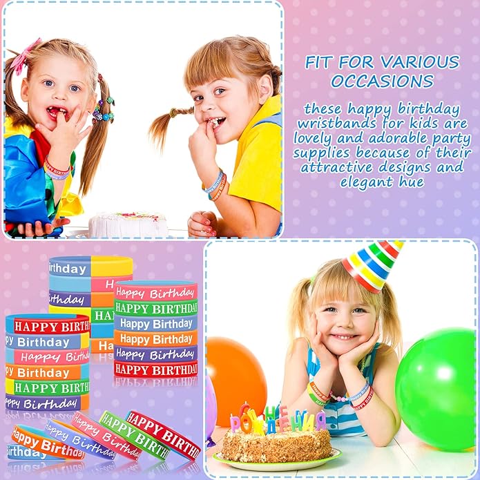 - Fit for Various Occasions: these happy birthday wristbands for kids are lovely and adorable party supplies because of their attractive designs and elegant hue; They are ideal for birthday parties, baby showers, celebrations, holidays and other themed parties; You'll look attractive when you wear them