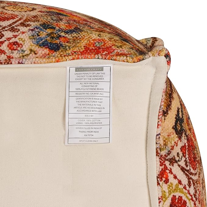 COTTON CRAFT Printed Pouf - Ottoman Foot Stool Bean Bag - Dorm Kids Room Bedroom Home Décor Accent Seating - Boho Modern Comfortable Prefilled Cotton Square Pouf Footrest - 17x17x17 inch - Coral Multi