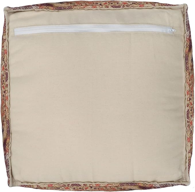 - Design: Expertly made from 100% Cotton by trained artisans, this 17 inch square pouf packs a big punch on many design levels. Its home friendly color palette fits into any design style. The intentionally distressed fabric print gives your home a sense of classic and bohemian presence.