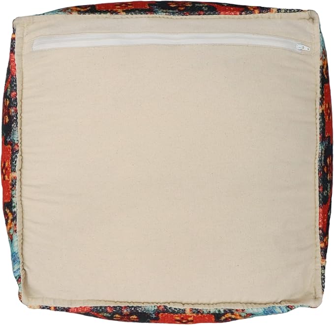 - Design: Expertly made from 100% Cotton by trained artisans, this 17 inch square pouf packs a big punch on many design levels. Its home friendly color palette fits into any design style. The intentionally distressed fabric print gives your home a sense of classic and bohemian presence.