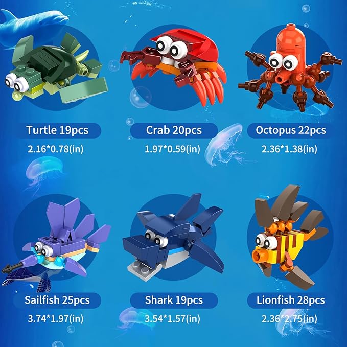 - 【New Superior Gift for Your kids】This Mini Building Blocks Toys for small hands to hold, Easy to assemble and disassemble, Which can stimulate your child's imagination and logical thinking ability. When you bring a mini marine creature building blocks sets to accompany your kids to parties, Birthdays, Easter, Thanksgiving, Halloween, Christmas and other occasions, It would be a nice holiday gift
