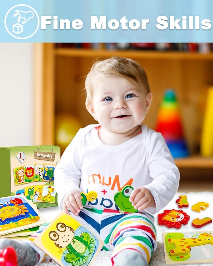 Benresive Wooden Toddler Puzzles Ages 1-3, Montessori Toys for 1 2 3 Year Old Boys Girls, 8 Pack Animal Toddler Toys Gifts for 1 2 3 Year Old Boys Girls, Learning Educational Preschool Toys