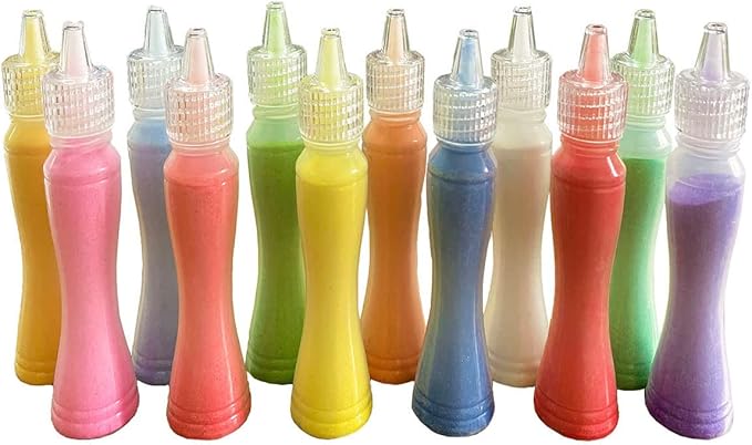- Package includes:You will get 48 Pcs Art Kits(it inculdes 12 Color bottles sand with 24 Sheets Sand Art Painting Cards;12 Sheets Magic Sticker Painting card;Comes with sand painting tray and tool accessories)