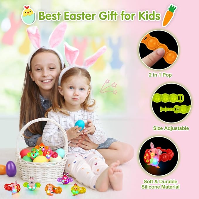 - đăReturn Gifts & Easter Basket Stuffersă Easter light up bracelets, great Easter egg fillers and return gifts for kids birthday partyďźpopular with kids. Ideal gift for Easter party and party decorations. Also as perfect family gifts, class prizes for students, cute enough to wear in a day even when bracelets light off. Get your kids a big supprise!