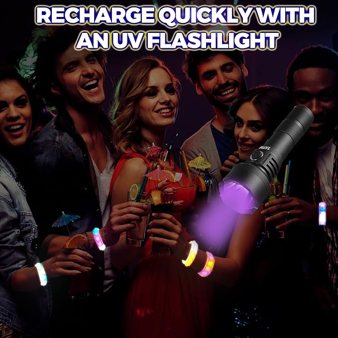 - 【Glow in the Dark, Best Party Favors】— RECHARGE QUICKLY WITH AN UV FLASHLIGHT OR UNDER THE SUN. Decompression toy wristband is small in size and light in weight, which is convenient for you to carry. The length of the wristband can be adjusted according to the actual situation of the wrist, which is suitable for most people to wear and play. This set is great for party favors in camping, families, schools, offices, to name but a few.