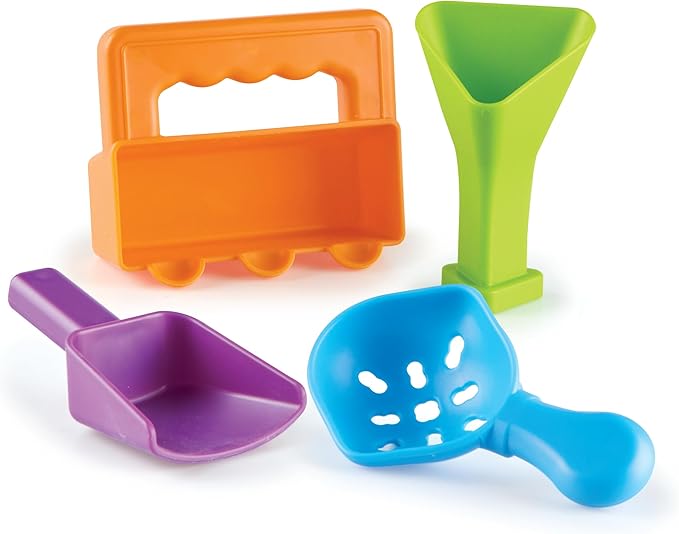 - Four Fun Ways to Scoop: Sized for little hands, these fine motor tools come with 4 ways to scoop—rotate & sift, funnel & stamp, twist & pour, or scoop!