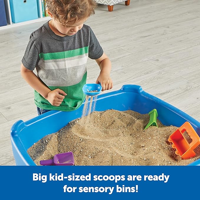 - Sensory Bins and Beyond: Made from durable, wipe-clean plastic, these sensory scoops are ready for use in sensory bins, sand boxes, water tables, and more!