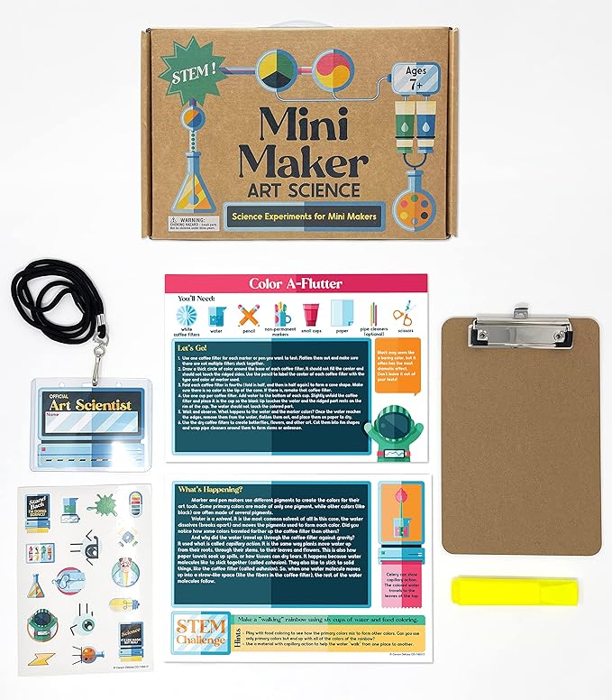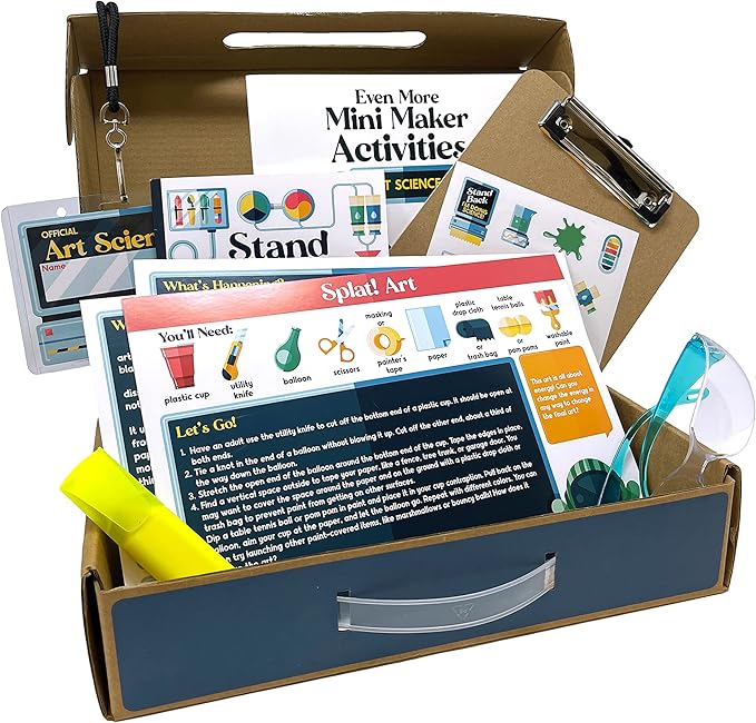 - Art and Science Curriculum Made Fun: Mini Maker Kits are great for both art and science classroom and homeschool curriculum. Each experiment includes a list of what’s needed, step-by-step directions, tips, and observations along the way.