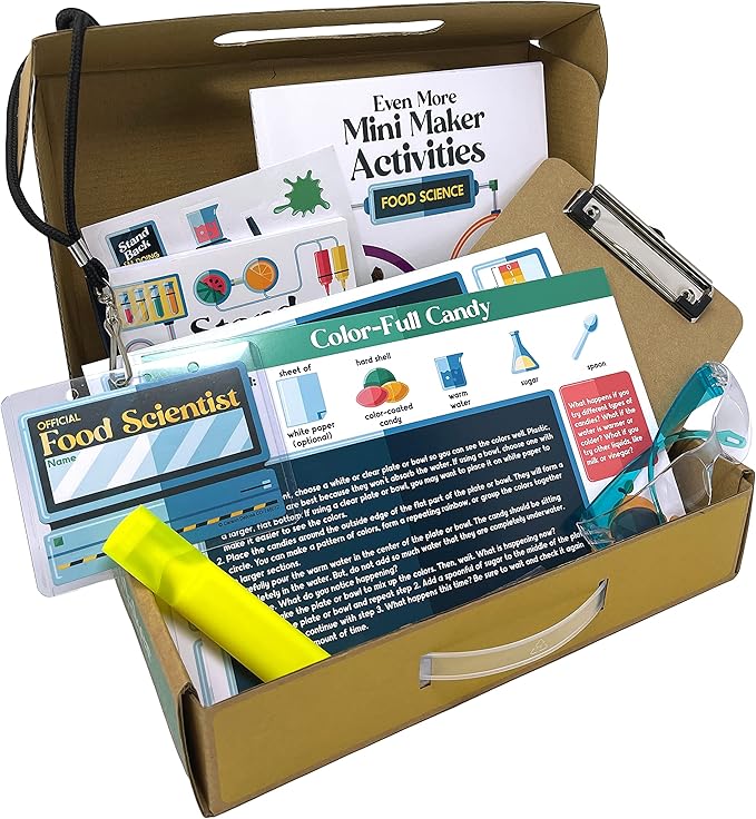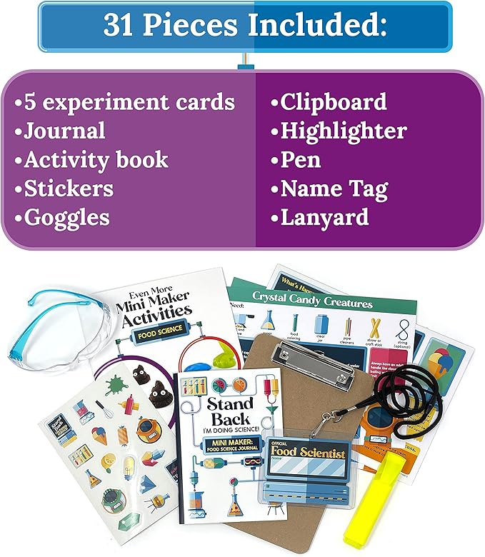 Carson Dellosa Grades 2-5 Mini Maker Science Kits: Food Science, Journal, Activity Book, Experiment Cards, Stickers, Goggles, Name Tag for STEM Activities, Classroom or Homeschool Curriculum (31 pc)