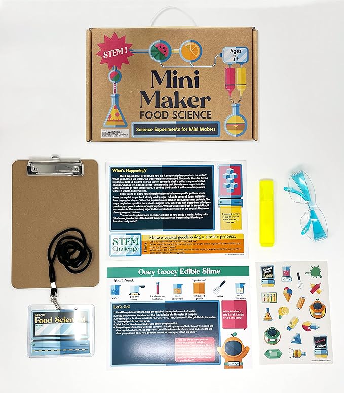 - STEM Activities: Set your child up for STEM success in BIG way with Carson Dellosa’s Food Science Mini Maker Kit—packed full of STEM learning activities and supplies to keep kids engaged for hours.