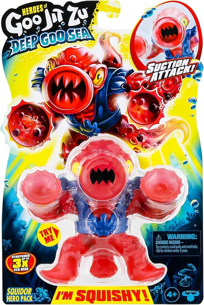 Heroes of Goo Jit Zu Deep Goo Sea Squidor Hero Pack. Super Squishy, Goo Filled Toy. with Suction Attack Feature. Stretch Him 3 Times His Size!