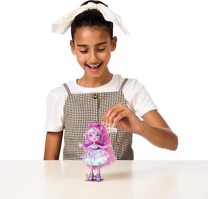 • Unia the Unicorn Pixling is poseable with 7 points of articulation. She has rooted long hair, a softgood skirt and detailed shoes.