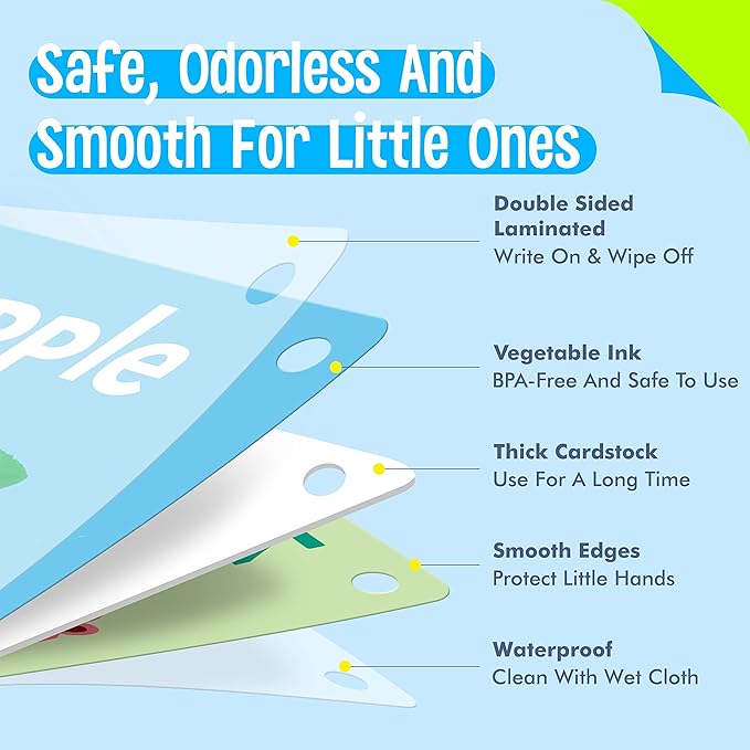 - Easy to Use and Storage: The flashcards are lightweight and well-packed, perfect for on-the-go learning and travel friendly. It measures about 5” x 4”, proper size for toddlers’ little hands. Come with 3 rings for easy sorting and organization.
