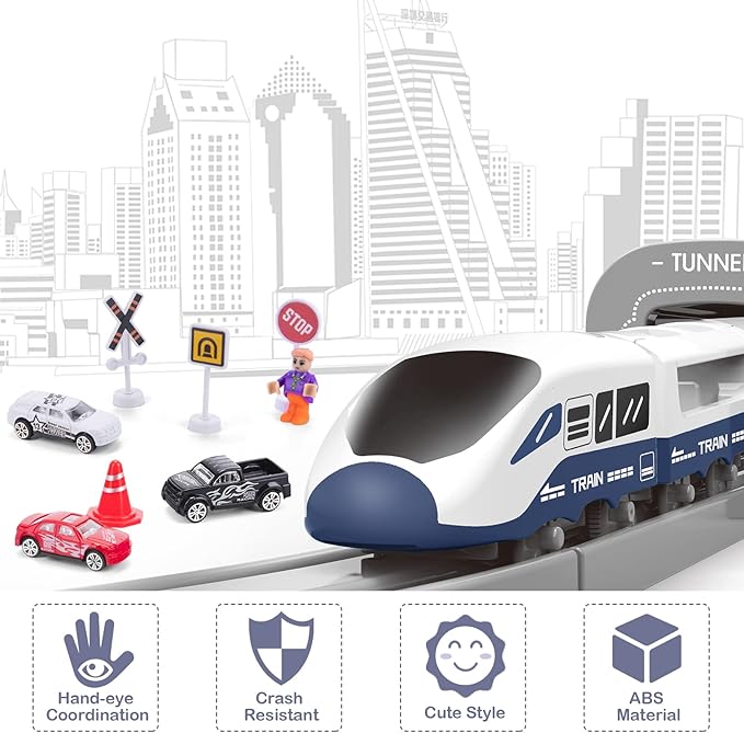 - TOYS THAT SPARKS IMAGINATION: The power of playtime to boost children's imagination, creativity, and coordination. This train set promotes kids' spatial imagination, logical thinking, problem-solving, hand-eye coordination, and fine motor skill development.