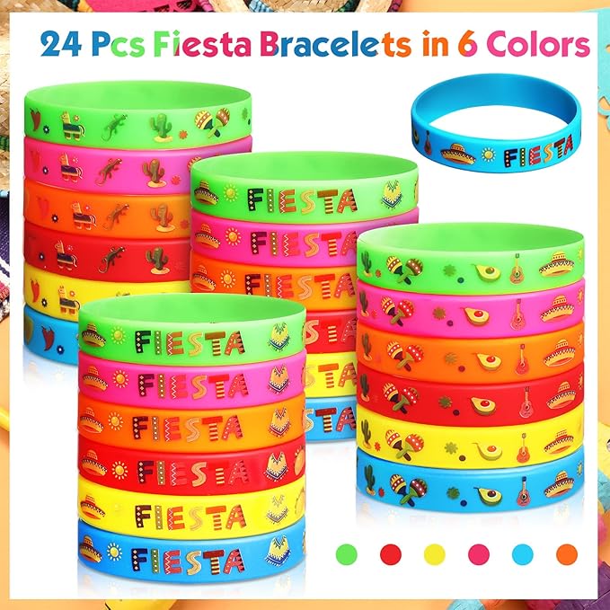 - Sufficient to Use and Share: there are 24 pieces of Mexican silicone bracelets wristbands in 6 colors, 4 pieces for each color, enough for your party use and share; These Mexican fiesta rubber bracelets will be indispensable gifts or dress accessories in your Mexican theme party
