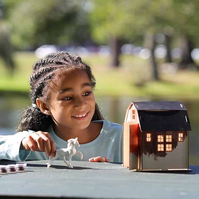 - Fun kids' activity kit to build, paint and play. Kids can construct the 11-piece wood barn (no tools or glue required)