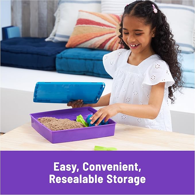 - SANDBOX TRAY WITH LID STORAGE: Use the Kinetic Sand kits tray as a play space to create epic sand art and storage for easy clean-up. Can be used as a sensory bin indoors or outdoors all year long