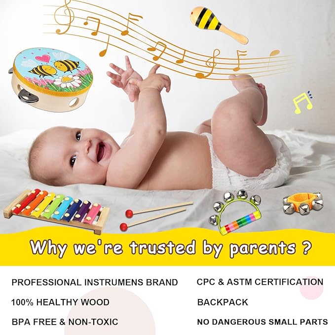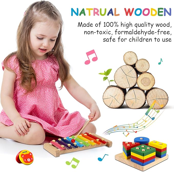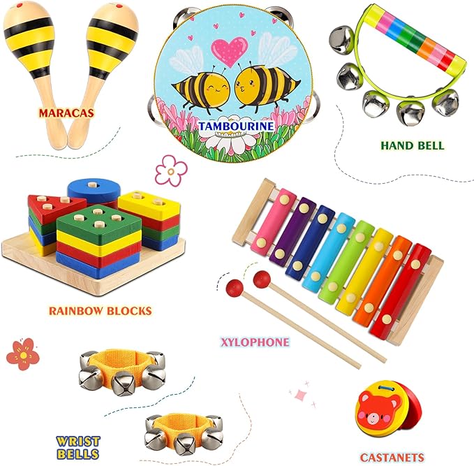 - đ”ăBest Montessori Musical Toys for Toddlers 1-3ă:The toddler educational instruments are devoted to help kids in moving, grooving, and feeling the beat, cultivate children's sensitivity of music and the perceptive of rhythm, develop Kids Intelligence,and to improve children's hand-to-eye coordination, social skills and sharpen concentration.
