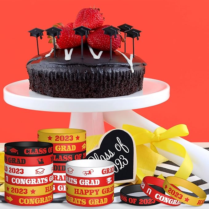 - 2023 Graduation Theme: The silicone graduation bracelets are printed with ‘class of 2023’, “Congrats Grad” “Grad 2023”, full of graduation element and theme, they are nice party supplies for graduation ceremony part.