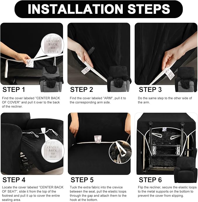 - Stay in Place: Durable elastic hem is well-sewn at the bottom of the recliner cover, making it holds the seat tight. Thick elastic loops can be hooked and secured under the footrest or metal bracket at the bottom, which can prevent slipping. The separated design helps every part of the furniture stays tighter while reflecting the original shape, recommended for both leather and cloth furniture.