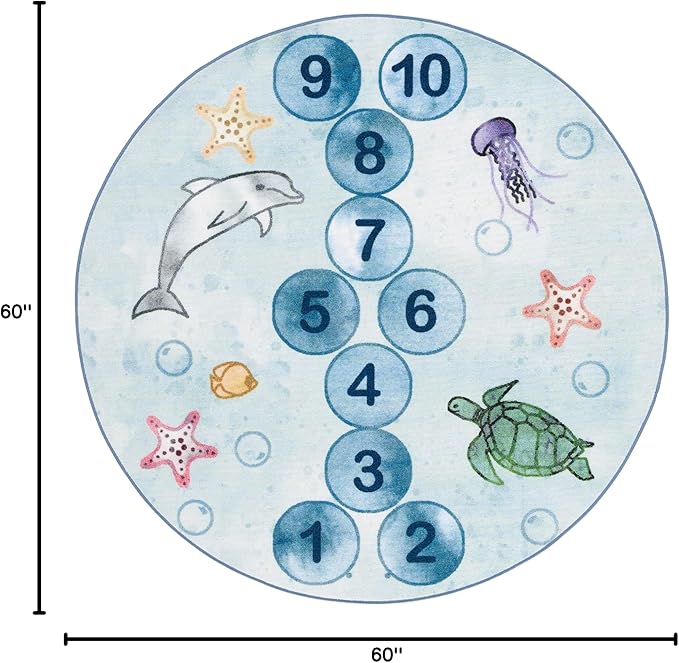 SAFAVIEH Kids Playhouse Collection Area Rug - 5' Round, Blue & Grey, Non-Shedding Machine Washable & Slip Resistant Ideal for High Traffic Areas for Boys & Girls in Playroom, Nursery (KPH217M)