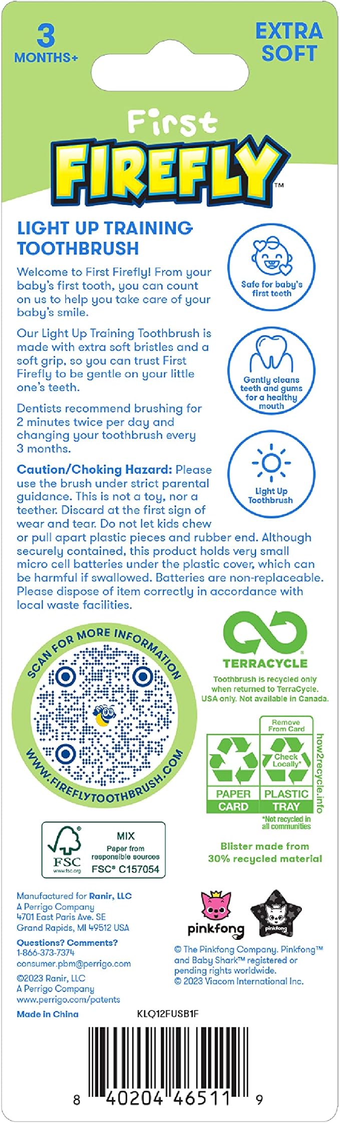 - INCLUDES: 1 First Firefly Training Light Up Toothbrush, Baby Shark