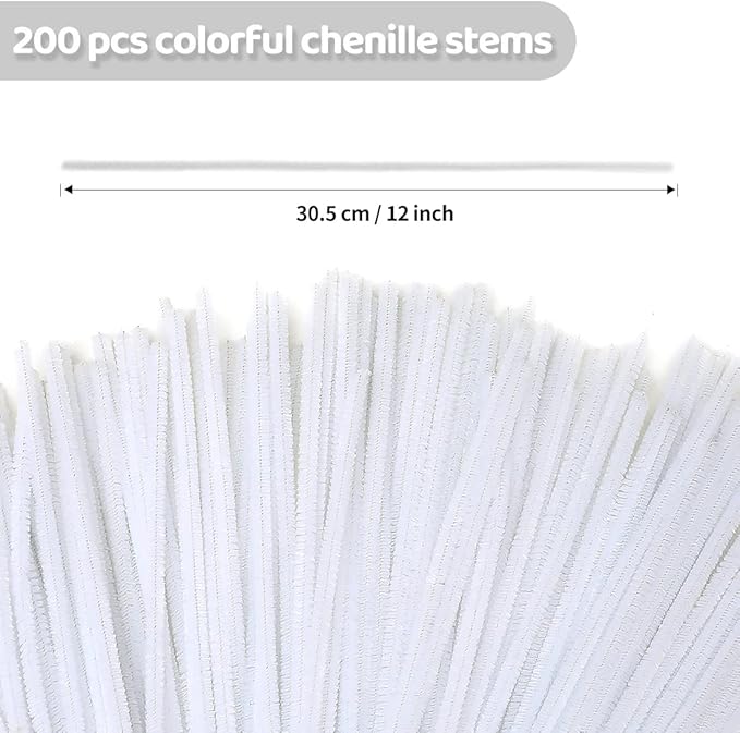 - You Will Get: 200 pieces of white chenille stems,exquisitely packaged. L×W×H:12*3*1 in. Available in a variety of colors, our pipe cleaners are sure to add a touch of whimsy to any project and create something that brings vitality to your life
