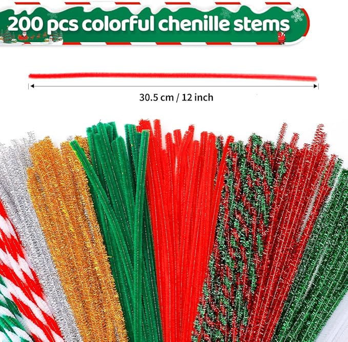 - You Will Get: 180 pieces of christmas color chenille stems,exquisitely packaged. L×W×H:12*3*1 in. Available in a variety of colors, our pipe cleaners are sure to add a touch of whimsy to any project and create something that brings vitality to your life