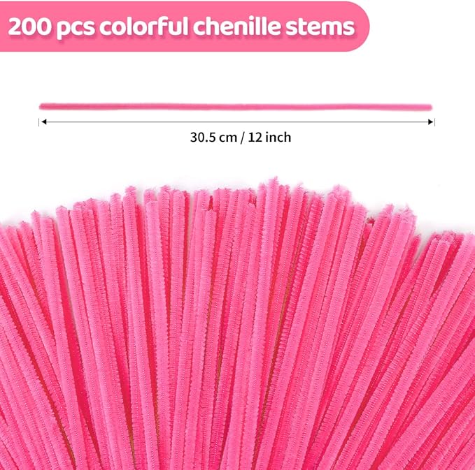 - You Will Get: 200 pieces of pink chenille stems,exquisitely packaged. L×W×H:12*3*1 in. Available in a variety of colors, our pipe cleaners are sure to add a touch of whimsy to any project and create something that brings vitality to your life