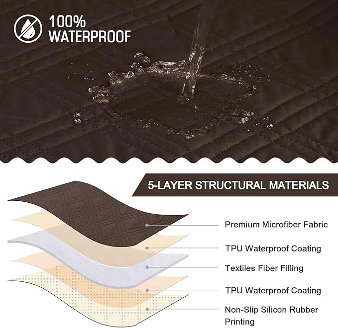 TAOCOCO 100% Waterproof Recliner Chair Cover, Oversized Recliner Covers for Large Recliner Chair with Double Straps, Non Slip Reclining Chair Cover for Kids, Pets(Oversized Recliner, Chocolate)