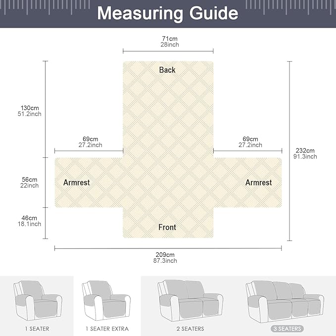 - 【DIMENSIONS GUIDE】Small pet recliner cover fit a chair with a seat width of 28 in, see measurement guide in photos. NOTE: Please confirm the size before purchasing. (Due to some lighting reasons, the color of each display will be different, so please refer to the actual color)
