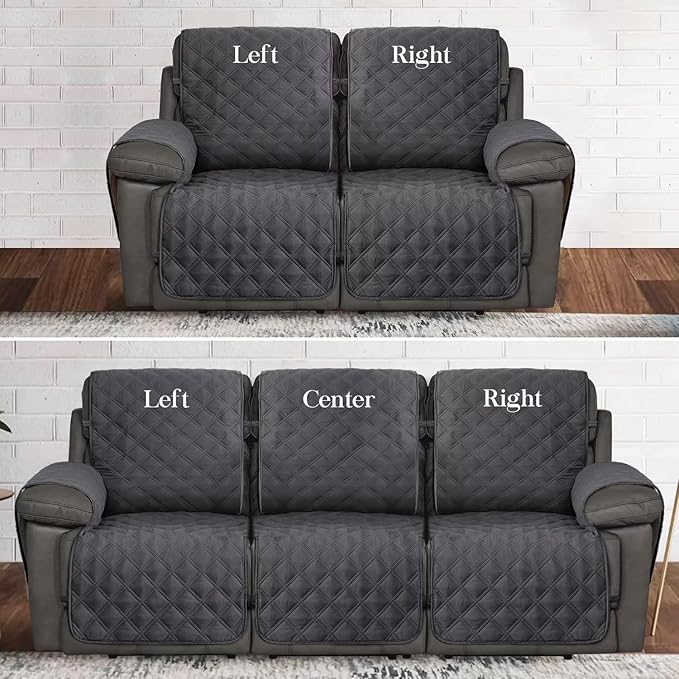 - Easy to Install: Drape your double recliner furniture with the cover, inserted the backing long tuck inserted into the gap of the sofa and attach the tuck elastic straps at each side into the gap between the back and arm to prevent cover sliding.