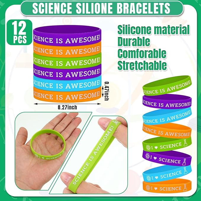 - Scientific Party Favors: you will receive 12 scientific drawstring bags, 12 scientific wristbands, 12 scientific buttons pins and 50 scientific stickers, a total of 86 pieces, plenty of party supplies are enough to meet your needs