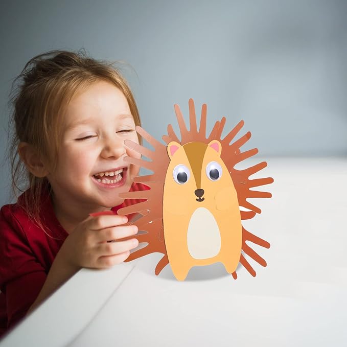- Arts and Crafts Kits: DIY animal art package contains: 16 cute animal pattern cards (with handprint and other shape cutouts), 1 point sticker, 1 instruction, 66 moving eyes, 100 colored pom poms, 1 tape, rich art craft accessories are ideal for more kids to spend fun time together