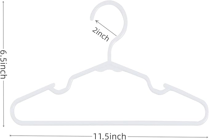 - [Safe material]: Kids hangers measure 11.5inch’’ x 6.5inch’’,our plastic hangers are made of non-toxic, non-fluorescent environmentally friendly PP material, which can be used both wet and dry.Toddler hangers are thin and lightweight, but sturdy enough to hang baby various clothes.Without terrible smell,suitable for baby clothes closet.Very affordable to nursery and storage organization!