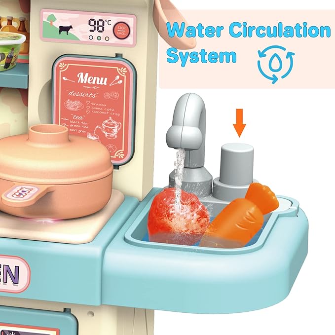 - Water Circulation & Storage:With our pretend kitchen set the sink can store water; you can press the tap to dispense water like a real kitchen sink the water will drain into circulation system to save water.