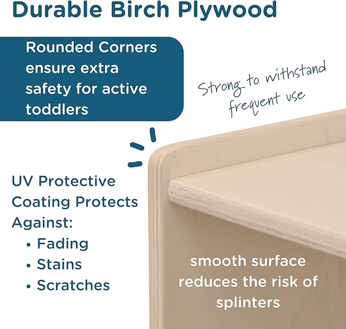 - PREMIUM BIRCH-PLY: This hutch is durably constructed using our unique, contemporary, cream-colored, premium, birch-ply. This unit features rounded corners for safety and a kid-tough, UV finish. Birch-Ply wood provides a smooth finish making it the safe choice against splinters.