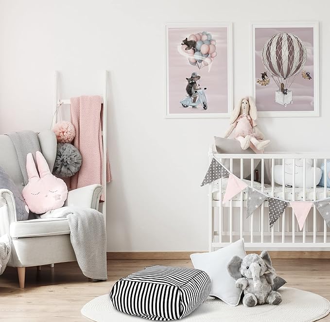 - Stylish & Fresh: Introduce a chic touch of black and white zebra style to your space with this stylish pouf ottoman, designed to add both color and extra seating. The narrow stripe design exudes a sense of sophistication, while the washable cover ensures that your pouf cushion stays fresh and clean with its long zipper and insert bag that keeps the stuffing in place.