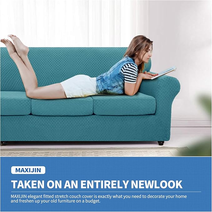 - HIGH STRETCHY - MAXIJIN fitted sofa slipcovers are made of high quality 85% polyester and 15% spandex fabric, which is soft in texture, comfortable in feeling and with good breathability. Due to its high stretchable feature, our magic couch cover is more flexible to be applied to various couches,such as t-cushion couches, box cushion couches, high back couches, small and extra large leather couches. Improved thick cloth is more durable and wear resistant