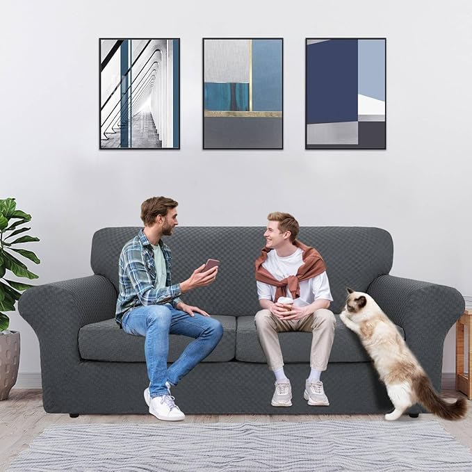 - NEWEST DESIGN - Are you looking for a way to protect your sofa while decorating the home? Try our creative design large checker jacquard sofa slipcovers! It is embellished with unique three-dimensional checks, it not only looks modern and nice, but also feels smooth, extra soft, delicate, and thick. High quality fabrics are durable for long term usage. Available in various vibrant colors for choose, perfectly fit any living room decoration